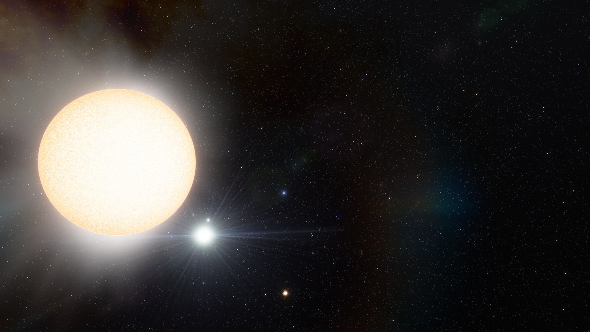 Если в двойной звёздной системе один из компонентов оказывается красным гигантом, а второй - белым карликом, то в такой системе может вспыхнуть новая звезда, или нова. Новая звезда, вразрез своему названию, характеризует не рождение звезды, а яркую вспышку, на короткое время увеличивающую светимость звезды на десять порядков. Белый карлик, будучи сверхкомпактной звездой, лишенной водорода и термоядерной реакции, захватывает богатую водородом оболочку красного гиганта.