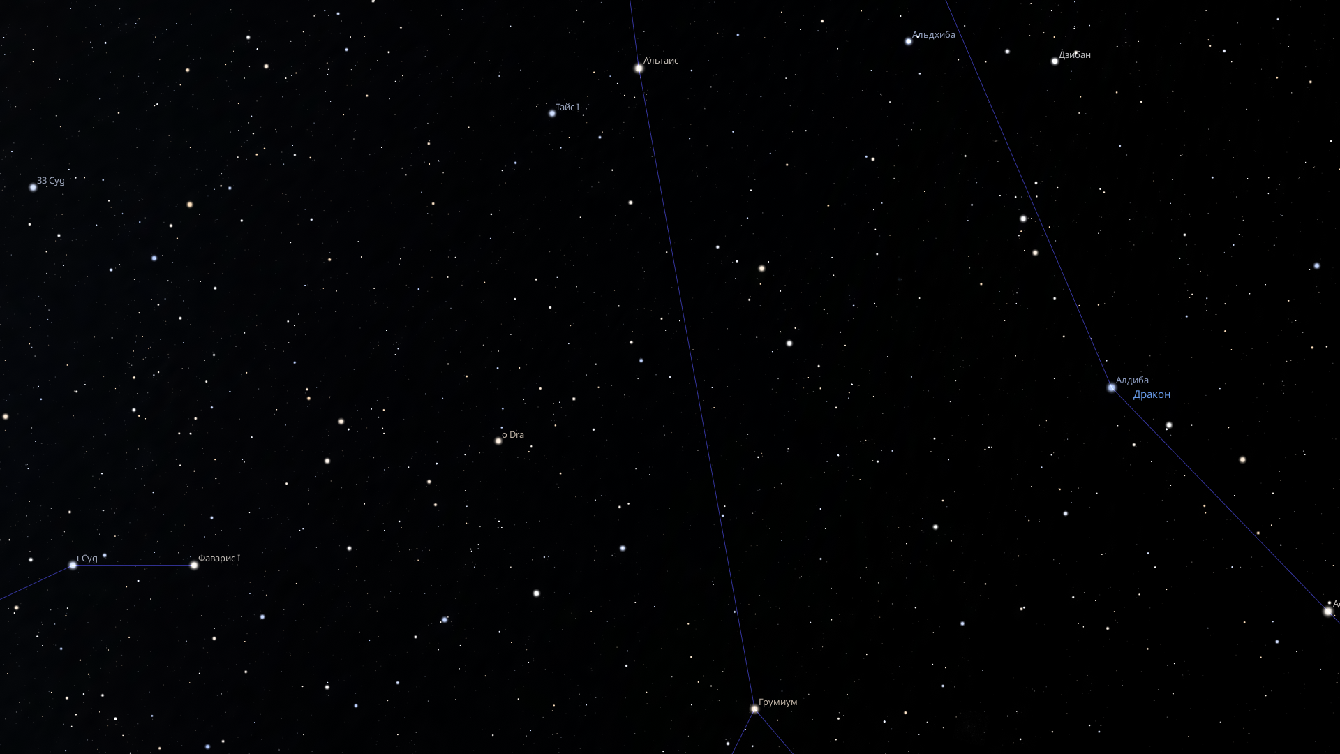 Созвездие Дракон - одно из крупнейших на звёздном небе. Это созвездие греческого происхождения: впервые оно было названо греческим астрономом Птолемеем во втором веке нашей эры. Созвездие олицетворяет Ладона - титана, после поражения в Титаномахии превратившегося в дракона, охранявшего сады Гесперид.